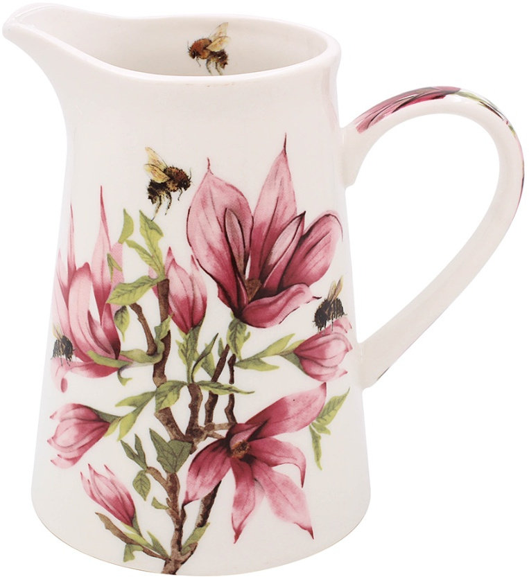 A charming ceramic jug adorned with delicate bees and vibrant pink magnolia flowers, from the Bee-tanical collection.