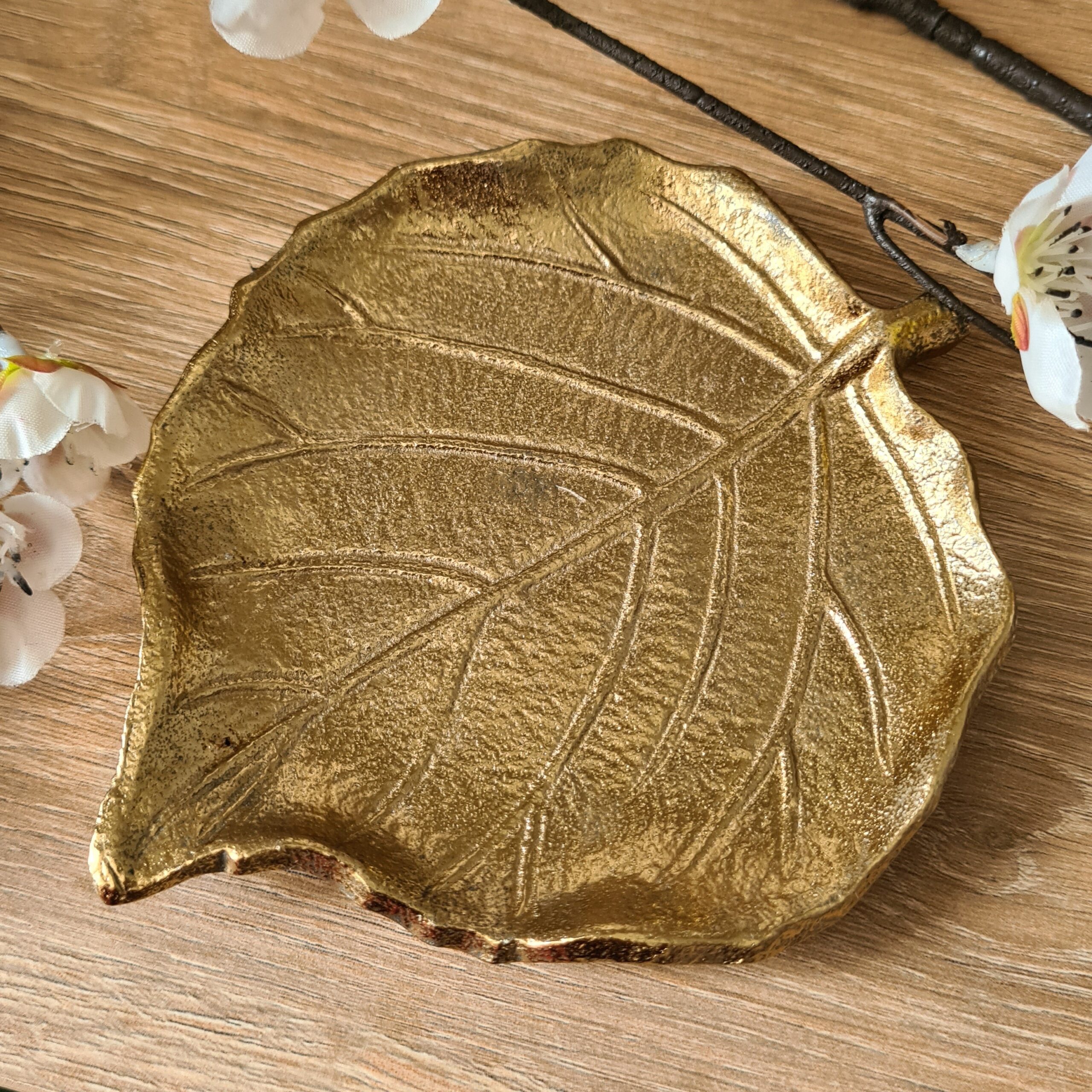 A gorgeous metal leaf in a gold tone. A beautiful trinket dish or display piece and perfectly themed for Autumn ๐Ÿ‚.