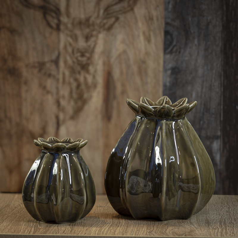Green Poppy Seedhead Vase