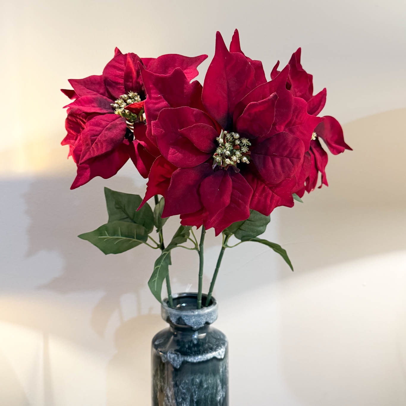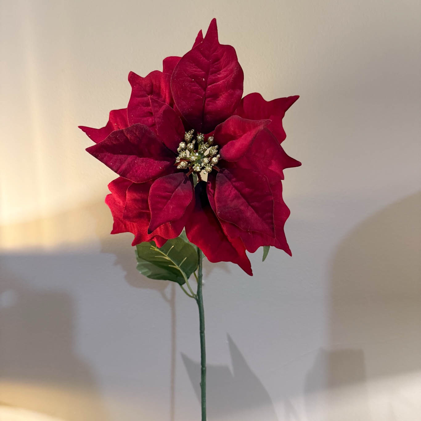 This stunning red velvet Poinsettia is the flower of Christmas, its vibrant and decadent petals have made this a popular favourite for the traditional Christmas decor.
