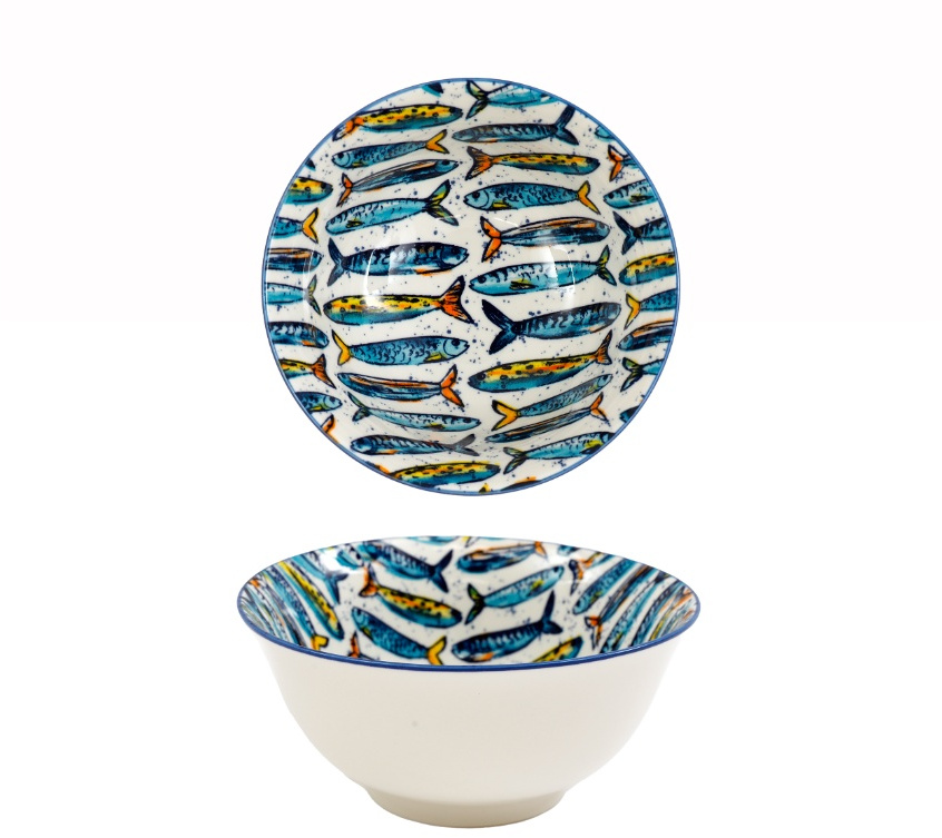 These delightful cereal bowls bring a cozy country cottage charm to your table, adorned with a quaint sardine motif that adds a gentle, whimsical touch to your morning meal or afternoon snack.