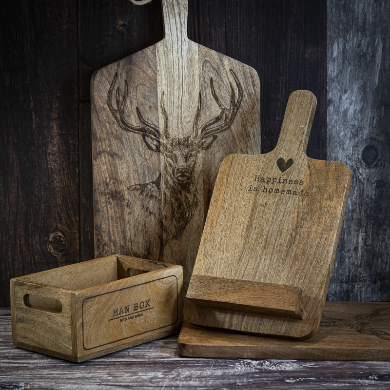 Crafted with precision, the chopping board boasts an intricately etched stag design, adding a touch of wilderness to your kitchen. The natural wood grain enhances its aesthetic appeal, making it not just a practical kitchen tool but also a stylish serving platter for entertaining guests.